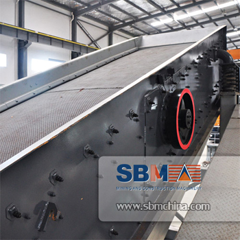 El motor se puede instalar a izquierda o derecha. Se compone de caja de tamiz, instalación de cojinete, máquina de vibración y partes de transmisión. Máquina de vibración de cubo se instala en la parte central del marco, llega al destino de adjustar amplitud de vibración con cambiar fuerza de vibración. El cojinete se cierra y usa lubricante y correa de triángulo. La máquina de alimentación alimenta los materiales uniformemente y continúamente.