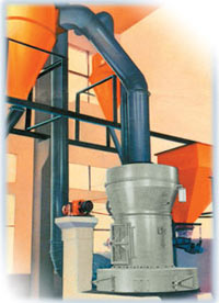 Материалы после дробления перевозятся подъёмником в бункер и потом равномерно перевозятся вибрационным питателем в камеру измельчения ведущей машины. Потом поднимаются затыловочным резцом в интервал между абразивным валиком и кольцом для их полирования и разминания. Ветродвигатель вдувает воздух в камеру измельчения для вдува порошка в анализатор с воздушной сепарацией. Не отвечающий мелкости порошок снова падает и измельчается. Пригодный мелкий порошок входит с потоком воздухом в вихревой порошкоуловитель изделия и в качестве изделия выходит из выпускного отверстия после отделения с воздуха.